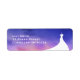 Um lindo vestido de noiva em um fundo de água-furtada roxa acentua esta etiqueta de endereço de devolução para chá de noiva. Esta etiqueta faz parte da Coleção Chá de Noiva Elegante em água-furtada roxa. Se precisar de itens adicionais de coordenação, basta entrar em contato conosco em prettyfancyinvites@gmail.com com o seu pedido.