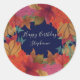 Folha de outono colorida personalizada para o adesivo de aniversário. Edite ou exclua o texto para se adequar à sua ocasião.