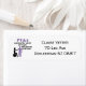 Estas etiquetas de endereço de retorno têm uma design de texto novidade e uma fotografia de um assistente de fisioterapeuta e de um paciente em cadeira de rodas.