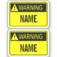 Rótulo de aviso em amarelo de segurança brilhante e símbolo de ponto de exclamação. Personalize com um nome personalizado, ocupação, título do trabalho ou outra mensagem em caracteres pretos correspondentes.