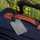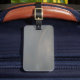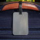 Uma etiqueta de bagagem com uma imagem de um arco-íris.