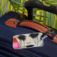 Pintura "The Chill" em uma Etiqueta de Bagagem 2024, mistura acrílica e petrolífera na canvas por www.JamieRoxx.us Saiba mais sobre o Pop Jamie Roxx e suas pinturas originais de Pop no seu website