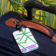 Este design apresenta um abstrato festivo que pode deixar a tripulação do aeroporto e os passageiros olhando para sua bagagem.