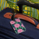 Etiqueta De Bagagem Abstrato floral rosa em preto