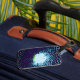 Etiqueta De Bagagem Abstrato Honeycomb Design azul e roxo