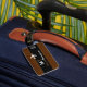 Design moderno e elegante para um viajante na moda, personalizado com seu nome e suas iniciais, e com a imagem de um avião branco, será fácil identificar sua bagagem agora