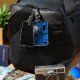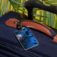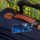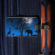 Os animais dos aviões africanos adoram esta bela etiqueta azul e preta de bagagem.