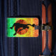 Ele é de acrílico, muito bonito e chegou antes do previsto. Impressão muito boa e cores firmes.