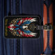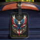 Uma ilustração de uma águia careca com suas asas se espalhou, apresentando as cores da bandeira americana.
