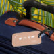 Boa bagagem de rosa empoeirada com a imagem de um coração, de um avião e do mapa do mundo, personalizada com o nome e as iniciais do elegante viajante