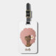 Este design de etiqueta de bagagem apresenta uma beleza natural com um colar cor-de-rosa afro, colares em camadas e arcos de ouro. A frente tem um fundo branco com seu nome. O fundo é um fundo roxo/rosa com a citação "Aproveite a viagem!"