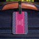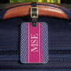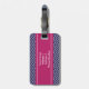 Chevron elegante, na moda e chique ou o ziguezague listram o teste padrão ou o design no fundo dos azuis marinhos e do branco com e na listra cor-de-rosa da framboesa ou da baga do acento com monograma ou iniciais feitas sob encomenda personalizadas para Tag da bagagem do saco do viagem. Clique "personalizam" o botão para personalizar seu presente e para adicionar suas próprias iniciais na informação da parte dianteira e de endereço na parte traseira. Escolha suas próprias pia batismal e cores fazer-lhe seus próprios. Este teste padrão da viga do na moda e do chique fará um grande presente para o senhor mesmo ou alguém que você ama. Apropriado para homens, mulheres, adolescentes, meninas, meninos. Para mais cores vá: zazzle.com/D_Zone_Designs