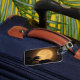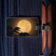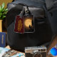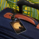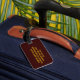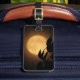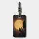 Faça sua bagagem se destacar em um carrossel do aeroporto com designs únicos! É outono, e uma lua de cheio amarela ouro luminosa subiu atrás das silhuetas pretas de folhas soprando na brisa nesta dramática etiqueta de bagagem de fotografia de arte. O fundo é iluminado em tons de laranja, ouro e marrom para criar um padrão de abstrato num motivo asiático. O inverso tem um fundo castanho para suas informações pessoais personalizáveis.