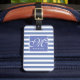 Etiqueta De Bagagem Azul Clássico e Branco - Monograma de Script