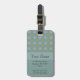 Esta etiqueta de bagagem apresenta um padrão de cor azul e dourado, em branco, pelo artista Jayne Wilson.