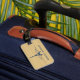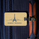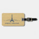 Etiqueta de Bagagem Flourish Francesa Elegante e chic, com fundo falso em madeira e design de Torre Eiffel em azul escuro, com cascatas de espirais na moda. Esta design de moda e moda é fácil de personalizar com o texto personalizado de sua escolha. Clique em "Personalizar" para encontrar mais opções de personalização.