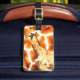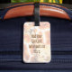 Uma pintura de uma girafa bebê contra a barriga dos pais. Tem muito que crescer para alcançar o tamanho da mãe e do pai. Certifique-se de editar a caixa de texto para que suas informações corretas sejam impressas na parte traseira desta etiqueta de bagagem. Imagem Copyright ©2018 Kimberly J Tilley.