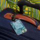 Elegante e romântico. Personalize suas informações de contato na etiqueta de bagagem. Viagem em elegância.