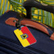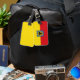 Etiqueta de bagagens com design com pavilhão de Bogotá, capital da Colômbia, bandeira vermelha e amarela com casaco de armas com águia no centro