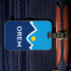 Etiqueta de bagagem com um design com a bandeira de Orem, Utah. Uma bandeira azul, branca e amarela com picos de montanha e o sol no centro