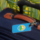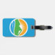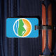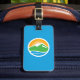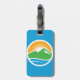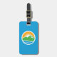 Etiqueta de bagagem com um design com a bandeira de Provo, Utah. Uma bandeira azul com o logotipo da Cidade do Provo no centro. O logótipo representa o lago de Utah e os picos de montanha próximos com o sol ascensão ao fundo