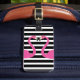 Esta etiqueta de bagagem tropical é decorada com uma fúcsia beijando flamingos em um fundo listrado preto e branco na frente, e todas as suas informações pessoais no verso, fazer-a perfeita para as próximas férias.