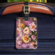Esta etiqueta de bagagem apresenta uma bela imagem de padrão floral em cores macios. A imagem é uma pintura artística, acrílica. Personalize os detalhes do texto na parte traseira da etiqueta.