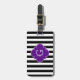 Etiqueta De Bagagem Black White Stripes, Monograma de Rótulo Roxo