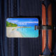 Ir de férias? Leve esta mala com você! Decorado com uma cena de praia e as palavras "Praia Feliz". É tudo personalizável, você pode mudar as palavras assim como a foto. Substitua a foto por uma fotografia da sua praia favorita.