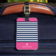 Etiqueta De Bagagem Blue and Pink Striped Nautical Pattern