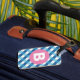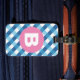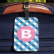 Etiqueta De Bagagem Blue and White Plaid Checked Pink Monogram