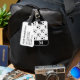 Etiqueta de bagagem com bolas de futebol preto/branco, inicial(s) monograma(s)/nome e endereço em fundo branco. Personalize com as informações de nome, nome e endereço do monograma usando os modelos fáceis. A cor da fonte, o estilo da fonte, o tamanho da fonte e a cor branca do plano de fundo são personalizáveis. Perfeito para o entusiasta esportivo.