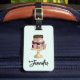 Uma etiqueta de bagagem com um delicioso bolo em camadas. Este bolo triplo de decker é adorado com pérolas. As cores incluem ouro rosa, magenta e ouro. Projetado com um gradiente brilhante para brilho extra.