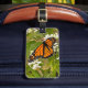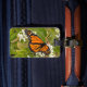 Foto de uma borboleta monarca alimentada por uma flor de jardim.