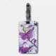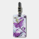 design original criado com uma ilustração vintage com borboletas roxas sobre um ramo de folhas e um fundo floral azul claro.