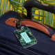 Perfeito para suas próximas férias na praia ou aventura na ilha, esta etiqueta de bagagem tropical apresenta um fundo de vibrantes folhas verdes da selva em um fundo preto. Personalize com seu nome na frente e adicione seus detalhes de contato de cheio na parte traseira em caracteres modernos em um fundo turquesa vibrante.