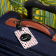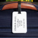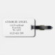 Design cor-de-rosa, preto e prateado com nome personalizado e detalhes de contato no lado oposto.