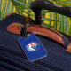 Esta etiqueta de bagagem está decorada com o escudo VVV da Peace Corps.