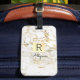 Etiqueta De Bagagem Caixa Dourada do mármore Dourado, DIY Black Name M
