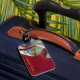 Etiqueta De Bagagem Calgary Cityscape through Peace Bridge at Evening