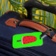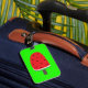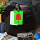 Etiqueta de Bagagem de Cápsula de Melancia projetada por Nisha Prabhu CuteHomeGifts. Bloqueio de cor do picolé de melancia branca em branco vermelho e verde com a ilustração a cores da água das sementes de melancia preta em fundo verde. Para a criança (ou criança em você!) Faça seu pop de bagagem com seu novo e único rastreador de bagagem de picolé!