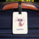 Etiqueta de bagagem personalizada, bonita e divertida, com uma ilustração de um axolotl cor-de-rosa com óculos. Engraçado cartoon axolotl que será o prazer do amante axolotl. Ilustrada e projetada por Patricia Alvarez.