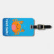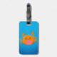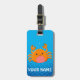 Um caranguejo cor de laranja giro sobre fundo de gradiente azul. Etiquetas de bagagem personalizadas para malas. Editar nome para personalizar esta marca. Ideia de presente para crianças.