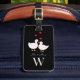 Etiqueta de bagagem com monograma de Sr. e Sra. com gráfico de dois patos com corações.