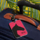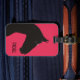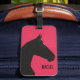 Esta etiqueta de bagagem minimalista oferece uma ilustração de cavalo negro e um nome personalizável. O cavalo é desenhado sobre um fundo fuchsia, e este é um presente excelente para senhoras que possuem ou amam cavalos.