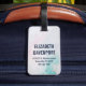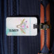 Uma etiqueta de bagagem personalizada na frente e suas informações pessoais na parte de trás. Concebidos com um fundo de turquesa e de aquarela pastel. Um crânio bicho-papão com um buquê floral sobre sua cabeça e pequenas borboletas se espalhando. Uma bela borda decorativa com pequenas formas de lágrimas em azul claro.