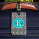 Etiqueta De Bagagem Cinza com Monograma Teal