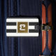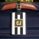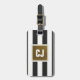 Simples design de etiqueta de bagagem personalizável com cinzas escuras / listras brancas e seu monograma.