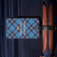 Crachá da crista Clan Elliot rodeado por uma correia e fivela sobre o antigo fundo tartano. Texto personalizado de ambos os lados.