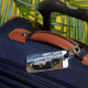 Deixe sua bagagem mostrar um estilo clássico com esse clássico Cobra na praia. O verso apresenta um quadro de conchas para realçar suas informações.